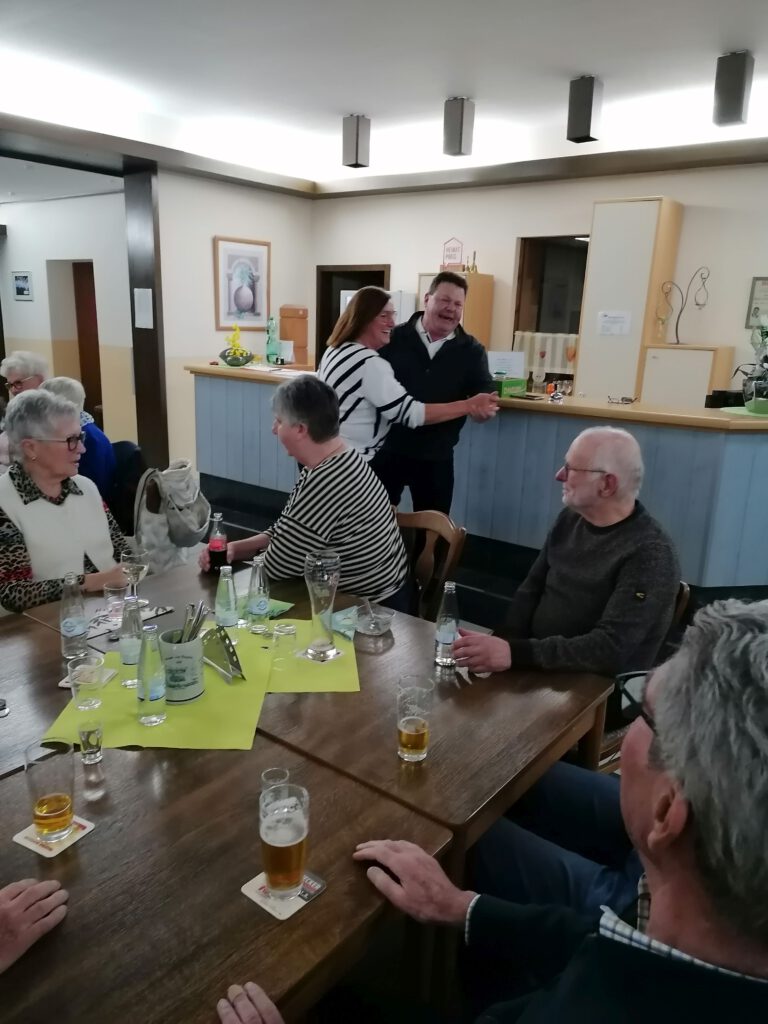 Zum Schluss gab es noch einen Absacker, einen „gute-Laune-Song“, der alle auf die Beine brachte, und ein Tänzchen für die, die noch bei guter Kondition waren.