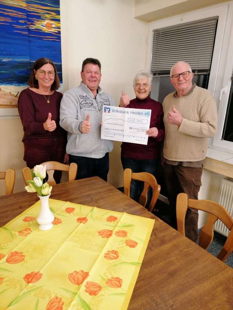 Die Heidener AWO ist auch in diesem Jahr großzügig mit einer Geldspende der Volksbank Heiden in Höhe von 300 € bedacht worden.